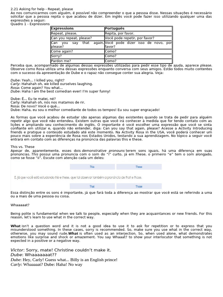 confiante em utilizar e, quando não entender, diga: Can you say that again, please? Acesse a Activity Introducing