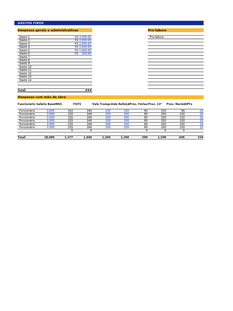 Gasto total R$ - R$ - R$ - R$ - R$ - R$ -