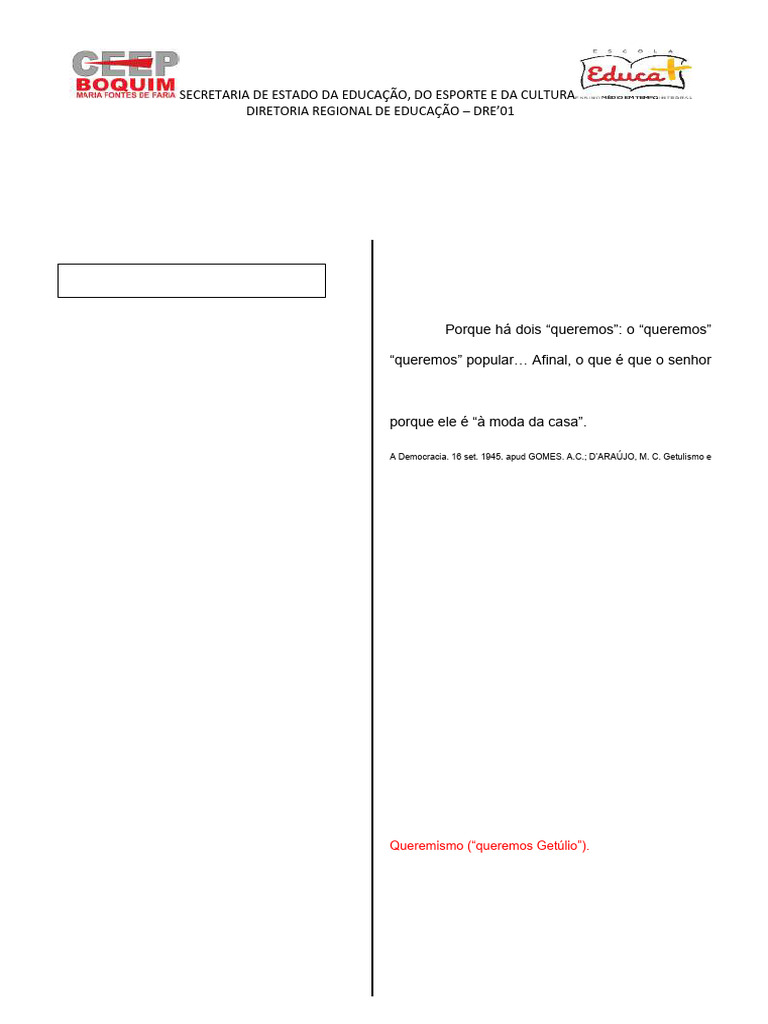 8- A _________________ foi um movimento popular 10- (UEFS) “A Geopolítica tem sido intensamente