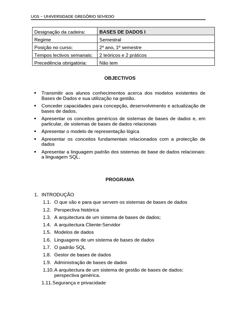 Apresentar os conceitos genéricos de sistemas de bases de dados e, em