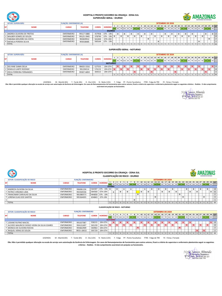1 ELISANGELA CONCEÇÃO NASCIMENTO ENFERMEIRO (92)98175-6654 308583 07H- 19H M M M M M M M M M M M M M M M M M M M M M M