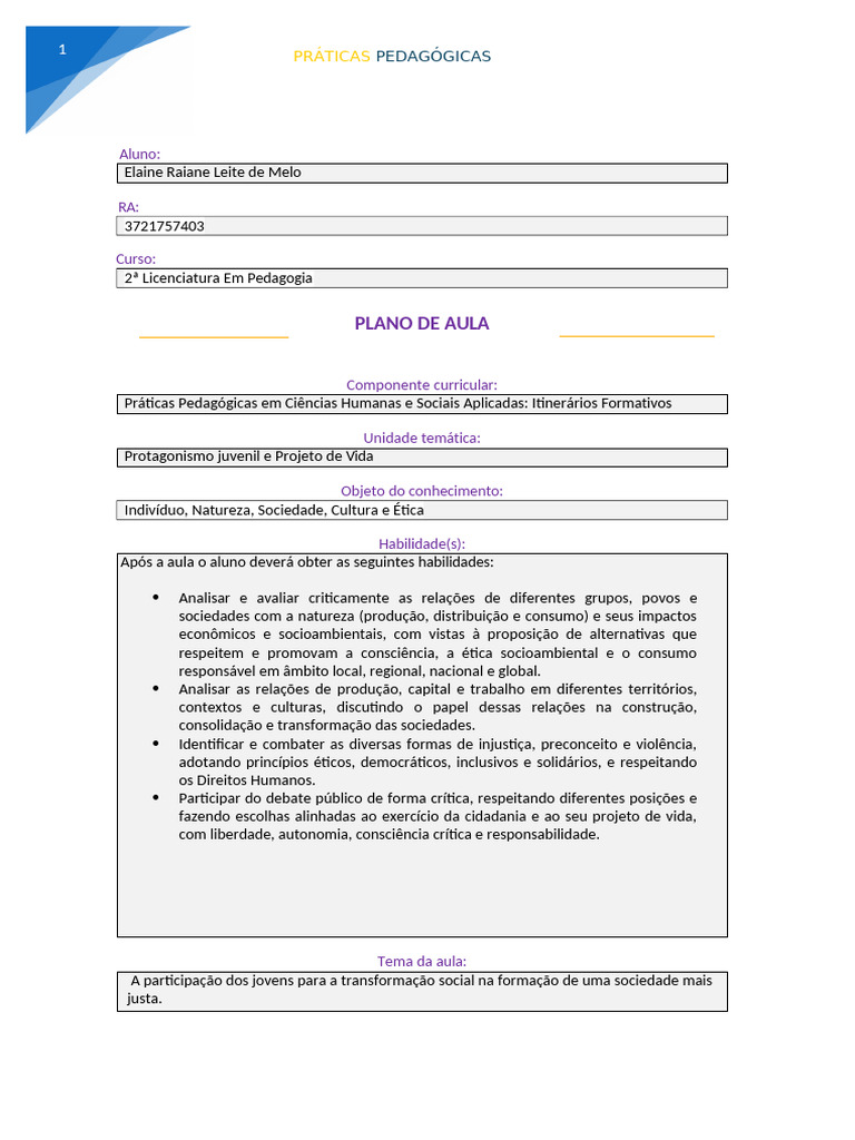 PLANO DE AULA