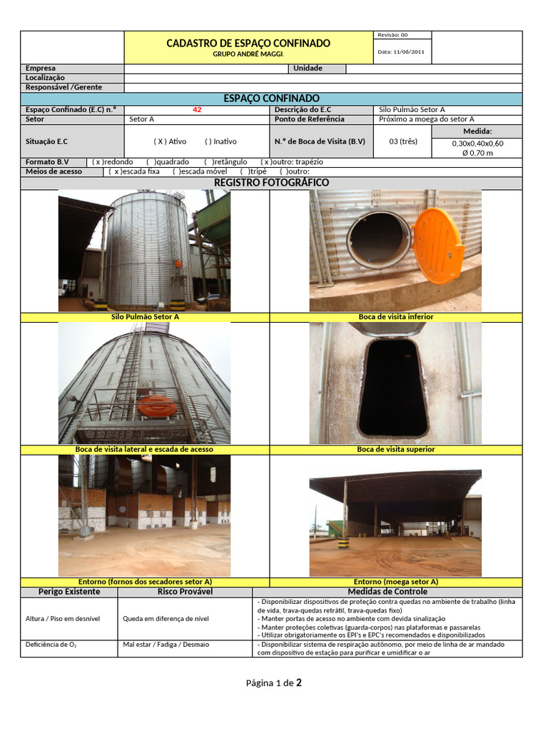 Espaço Confinado (E.C) n.º 42 Descrição do E.C Silo Pulmão Setor A