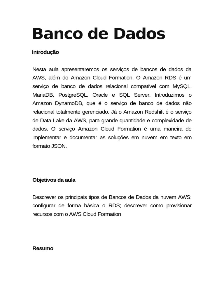 MariaDB, PostgreSQL, Oracle ou SQL Server. Há ainda o Amazon