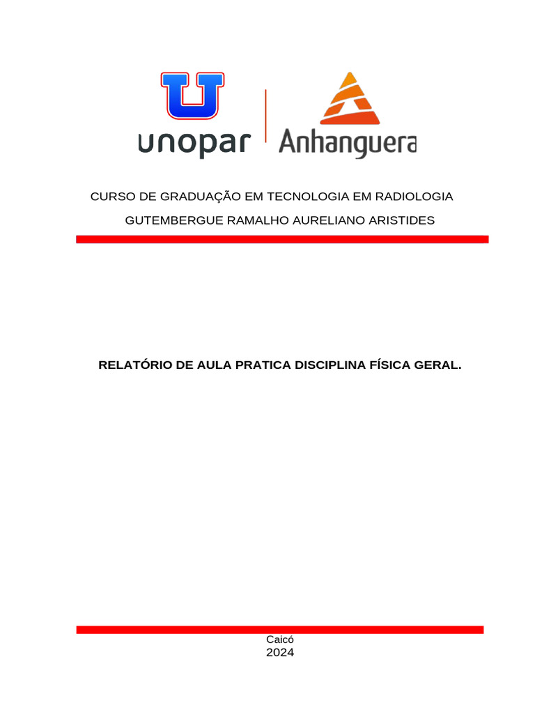 RELATÓRIO DE AULA PRATICA DISCIPLINA FÍSICA GERAL.