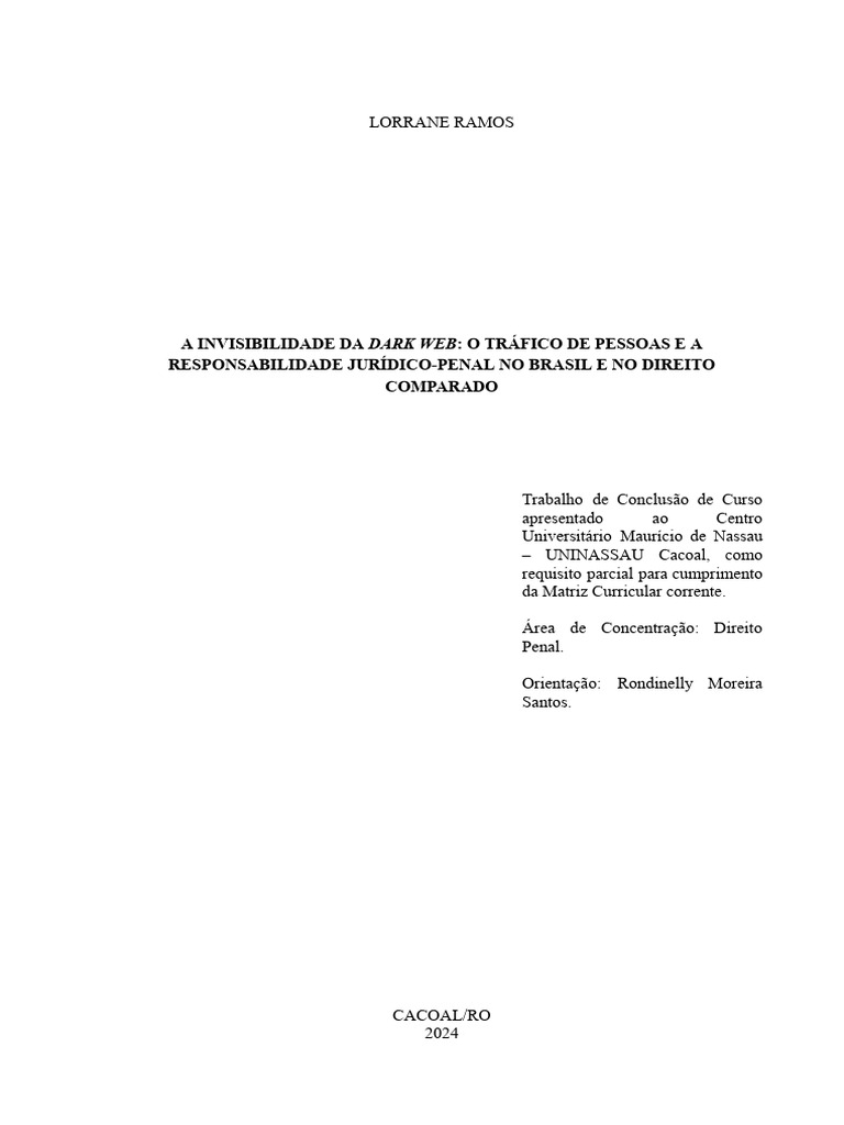 na Dark Web, incluindo elementos do direito comparado. A pesquisa busca responder ao