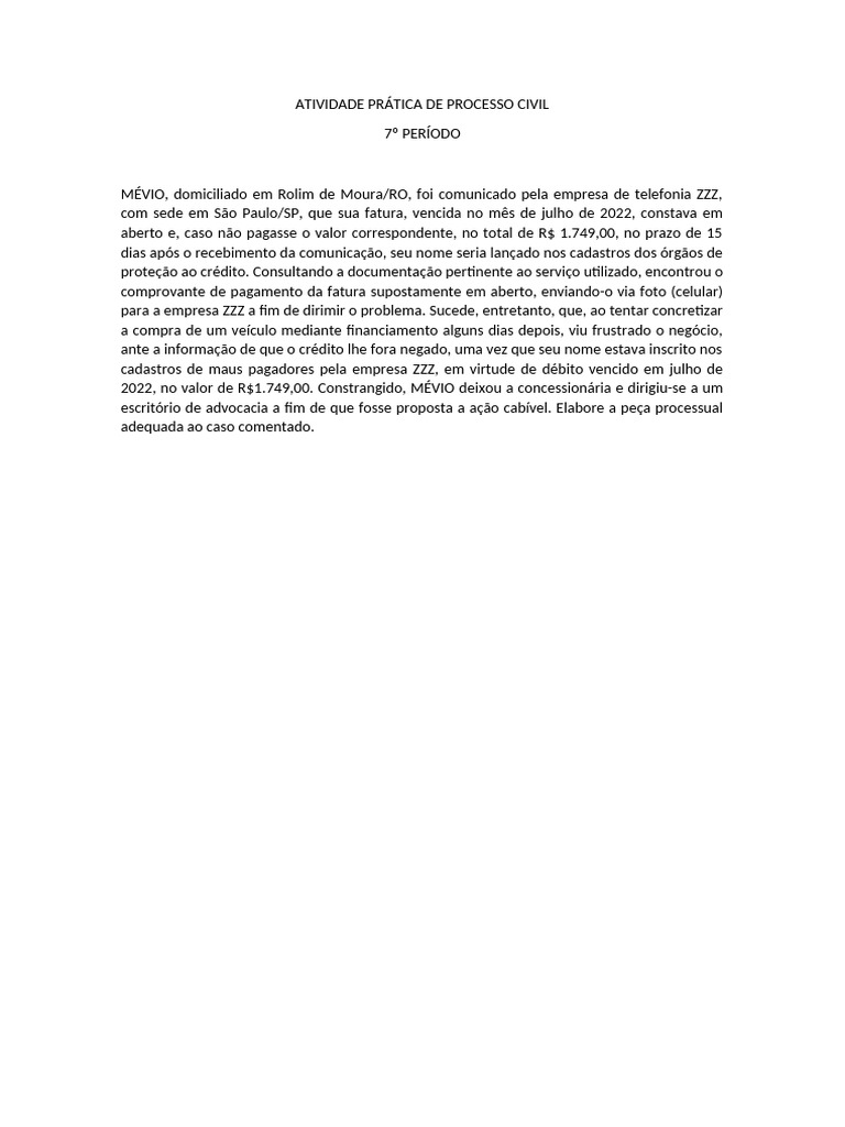 ATIVIDADE PRÁTICA DE PROCESSO CIVIL