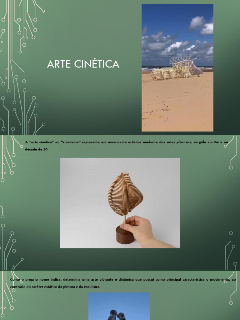 A “arte cinética” ou “cinetismo” representa um movimento artístico moderno das artes plásticas, surgido em Paris na