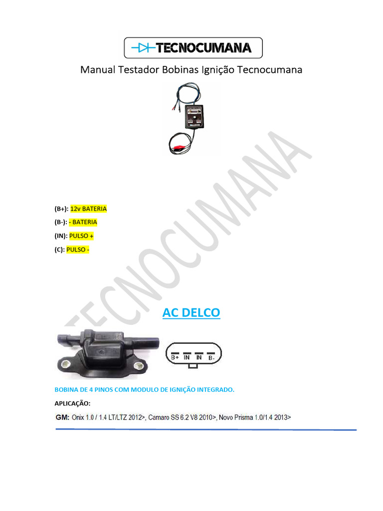 Manual Testador Bobinas Ignição Tecnocumana