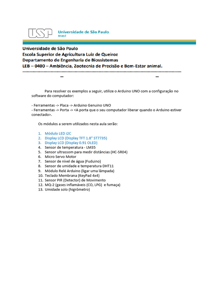 Para resolver os exemplos a seguir, utilize o Arduino UNO com a configuração no