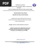 Assim, a dificuldade do desenvolvimento de leitura no aluno da 5ª classe, constitui a alavanca
