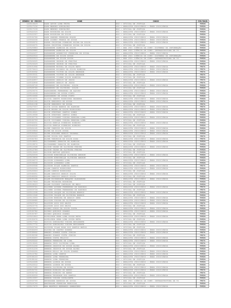 NÚMERO DO PEDIDO NOME CARGO COR/RAÇA