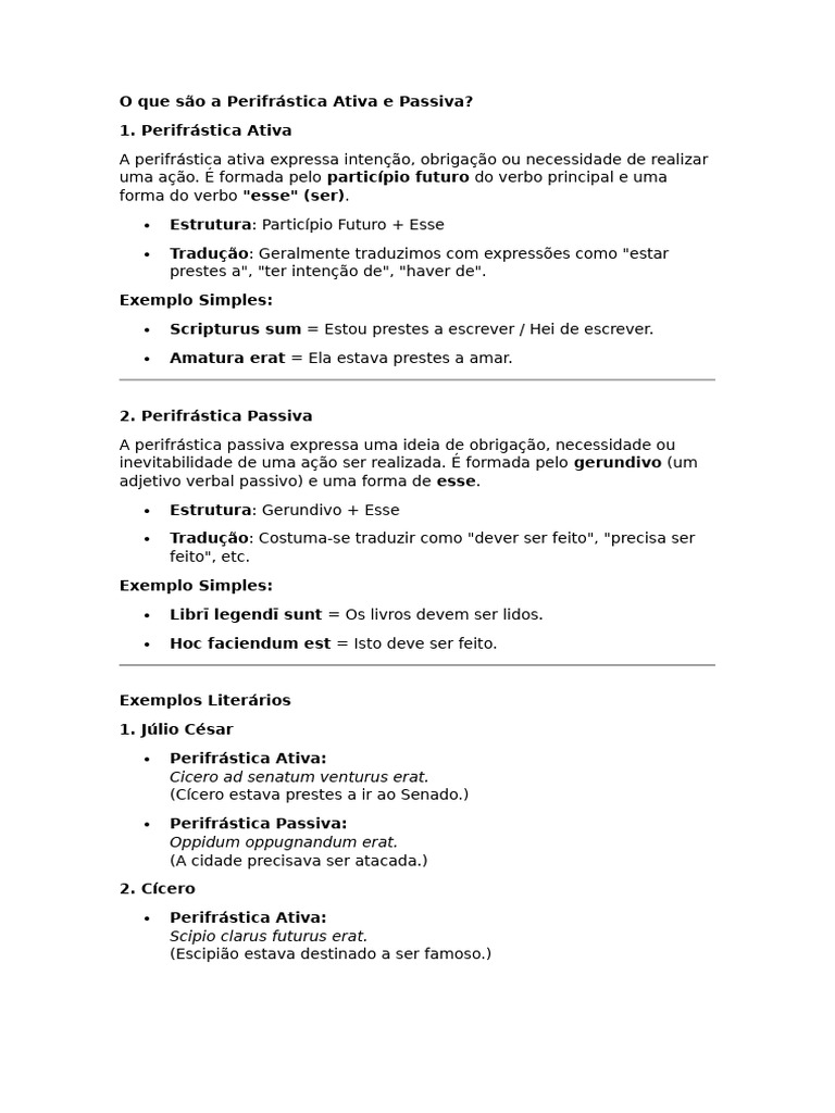 O que são a Perifrástica Ativa e Passiva?