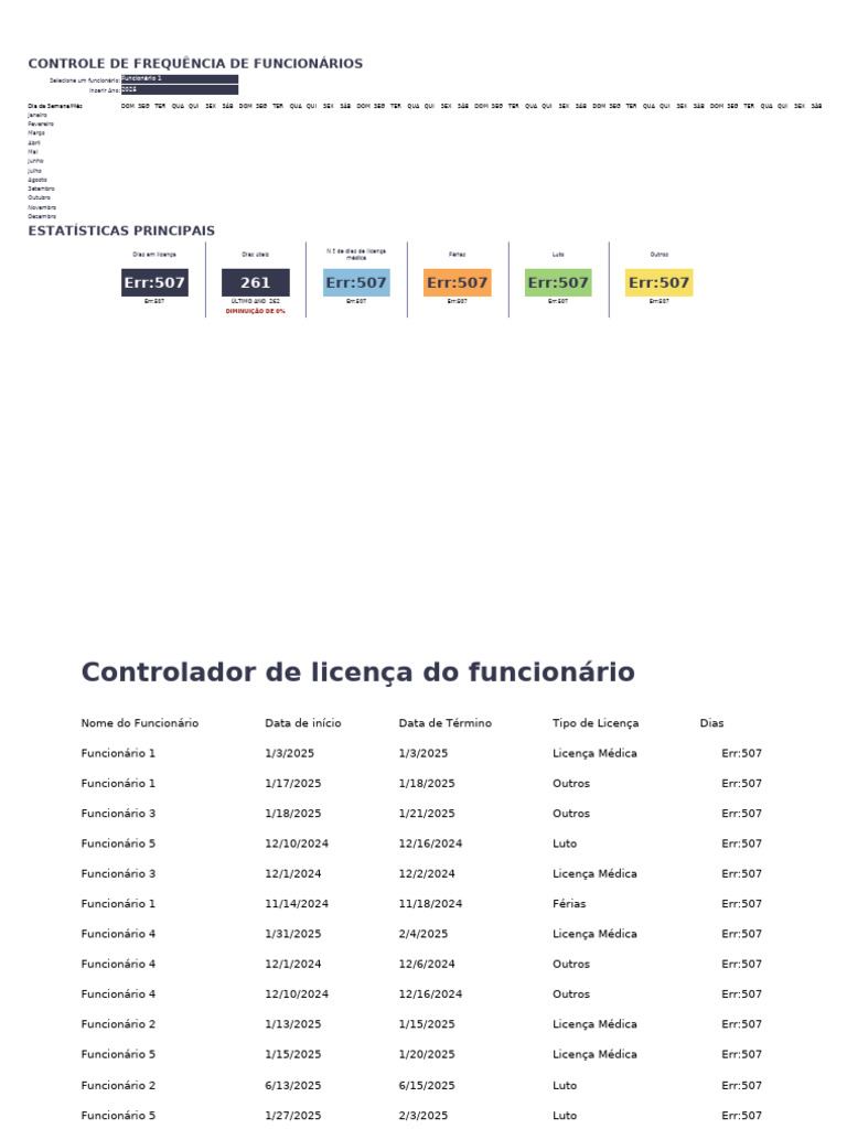 Funcionário 1 1/3/2025 1/3/2025 Licença Médica Err:507