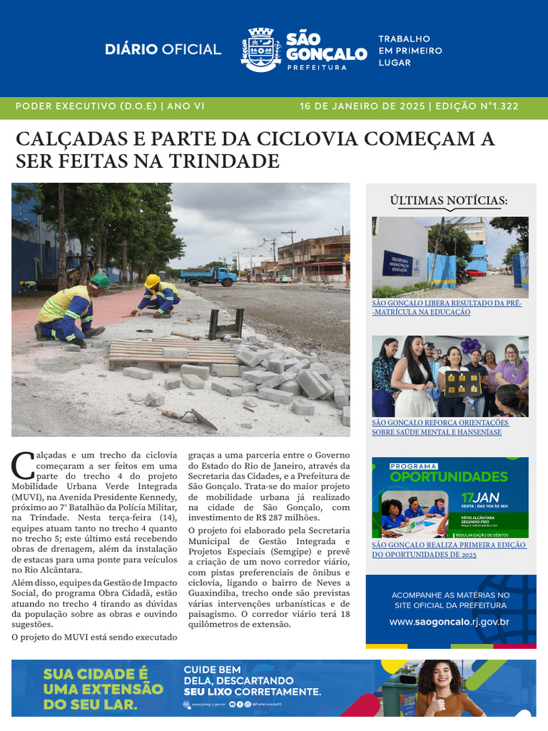 DIÁRIO OFICIAL ELETRÔNICO DO MUNICÍPIO DE SÃO GONÇALO D.O.E. | PODER EXECUTIVO | ANO VI | N.º 1.322 EM 16 DE JANEIRO DE 2025