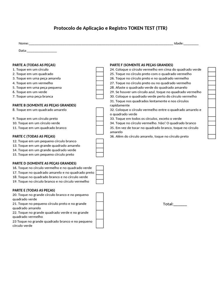 Protocolo de Aplicação e Registro TOKEN TEST (TTR)