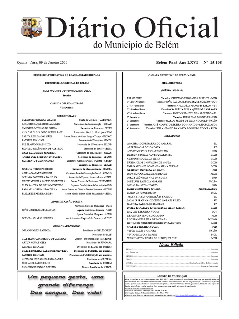 MATÉRIA PARA PUBLICAÇÃO: Devem ser postadas em http://diario.belem.pa.gov.br/ Considerando a Lei nº 8.488, de 29 de dezembro de 2005, que instituiu o procedimento