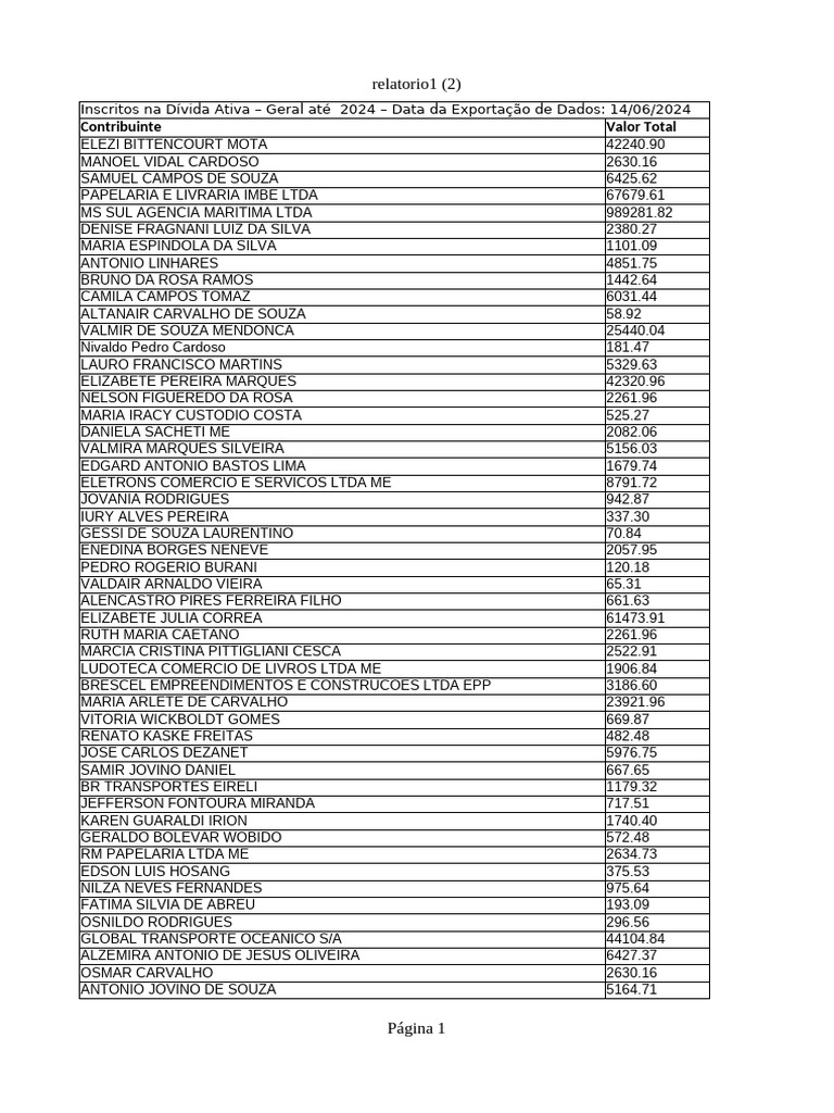 Inscritos na Dívida Ativa – Geral até 2024 – Data da Exportação de Dados: 14/06/2024