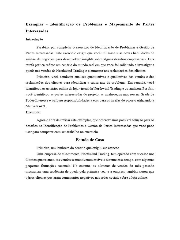 Parabéns por completar o exercício de Identificação de Problemas e Gestão de