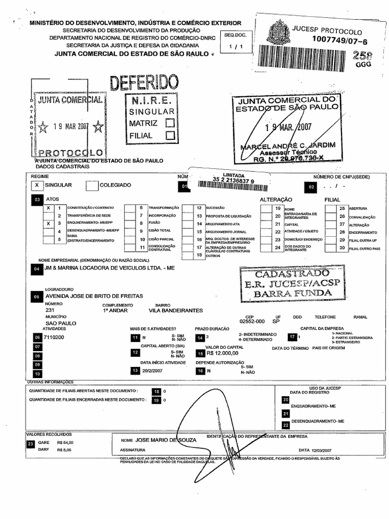 QUANTIDADE DE FILIAIS ABERTAS NESTE DOCUMENTO 18 0 DATA DO REGISTRO