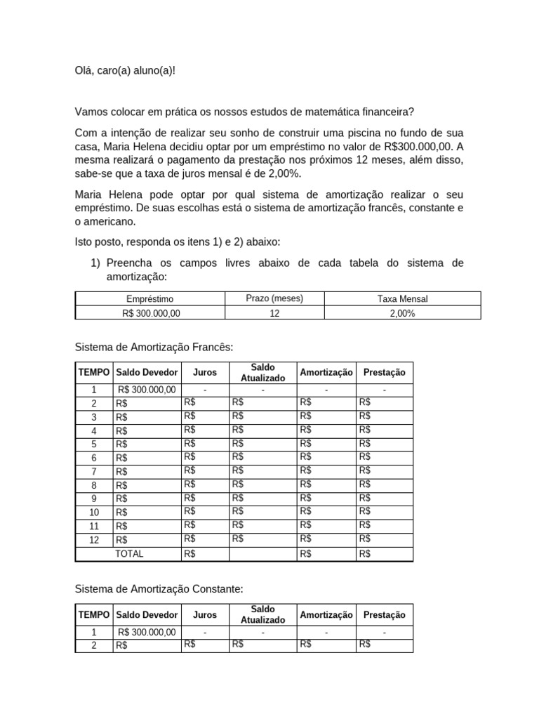 casa, Maria Helena decidiu optar por um empréstimo no valor de R$300.000,00. A