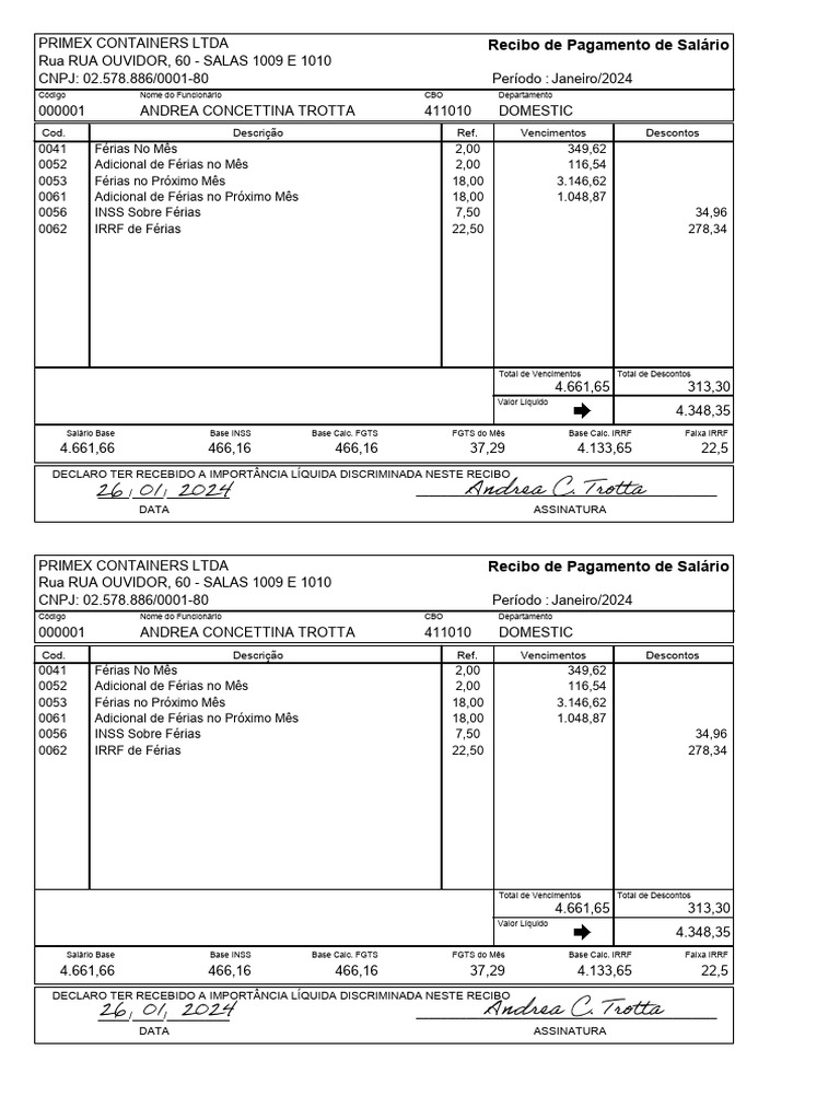 0041 Férias No Mês 2,00 349,62