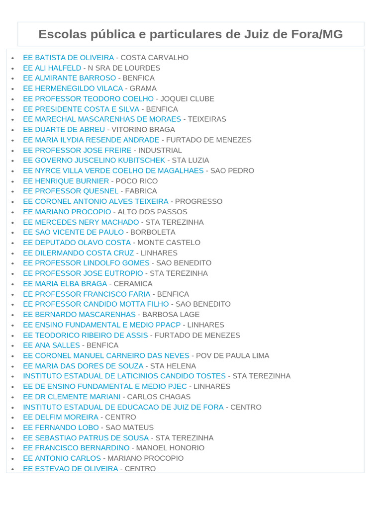Escolas pública e particulares de Juiz de Fora/MG