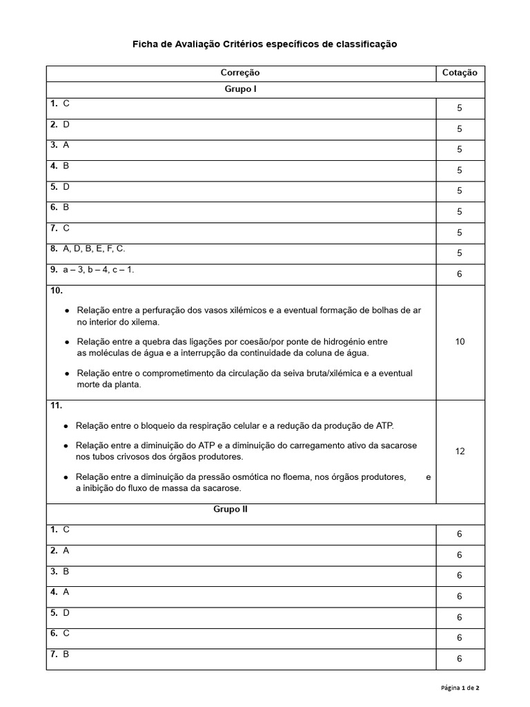 Ficha de Avaliação Critérios específicos de classificação