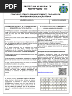 VOCÊ RECEBEU DO FISCAL DE SALA ESTE CADERNO O candidato estará sujeito à ELIMINAÇÃO do