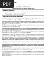 de custos, expedição, armazenagem, metodologias ágeis, processos logísticos, transporte, importação e exportação.