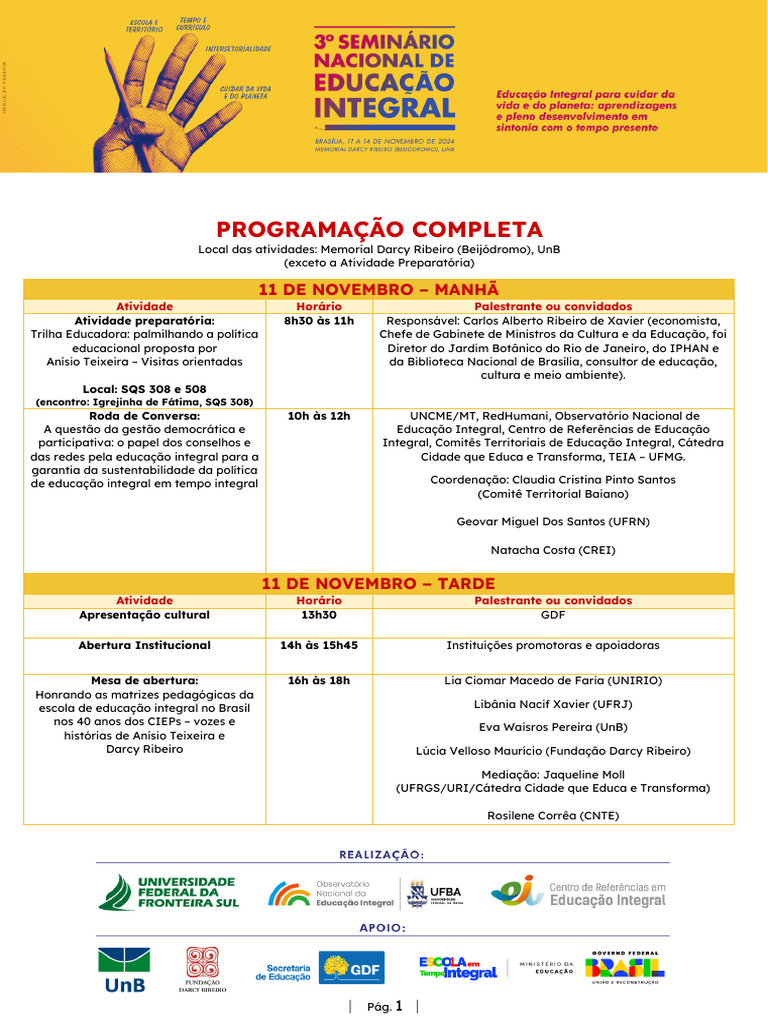 participativa: o papel dos conselhos e Integral, Comitês Territoriais de Educação Integral, Cátedra
