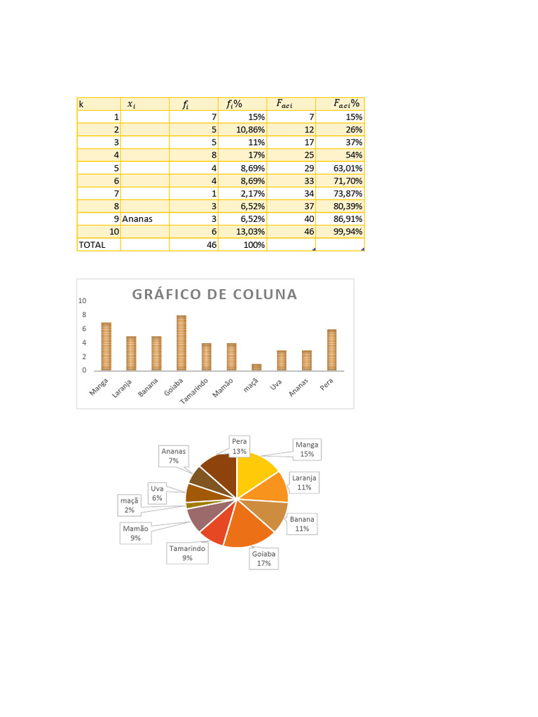 Foi realizado uma pesquisa de 46 pessoas para saber suas frutas preferidas.