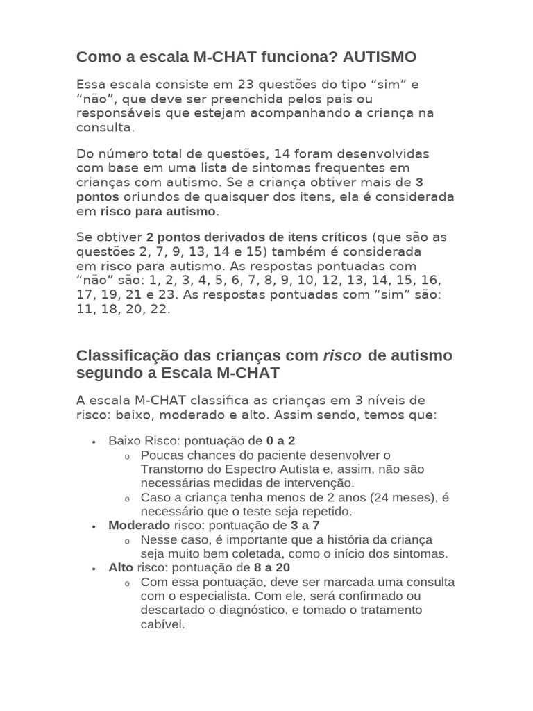 A escala M-CHAT classifica as crianças em 3 níveis de