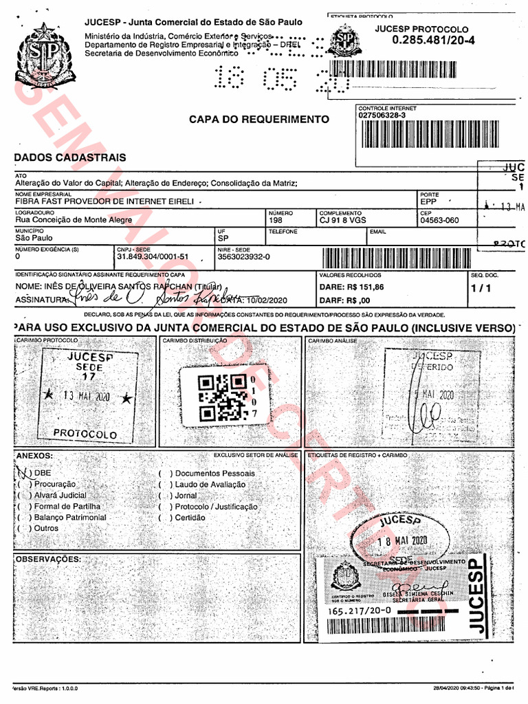 FIBRA FAST PROVEDOR DE INTERNET EIRELI 31 849 2304/0001 51