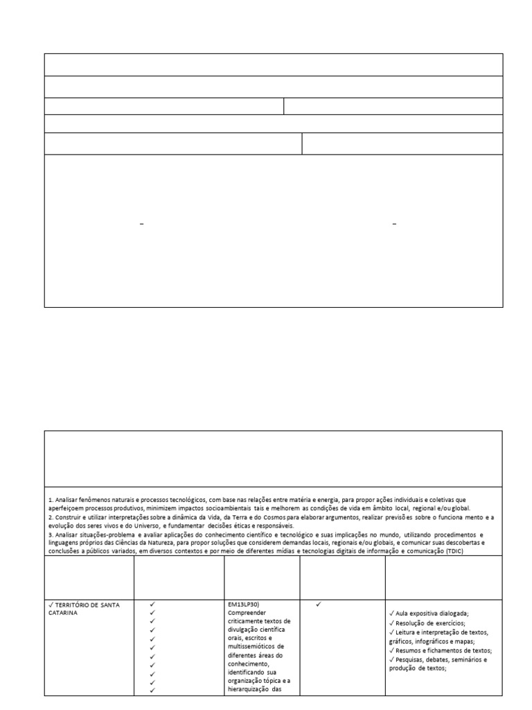 TEMA OBJETOS DE HABILIDADES CONTEÚDOS METODOLOGIA, PRÁTICAS