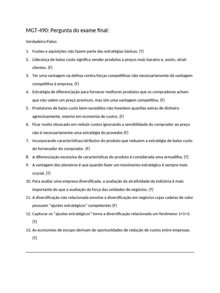 1. Fusões e aquisições não fazem parte das estratégias básicas. (T)