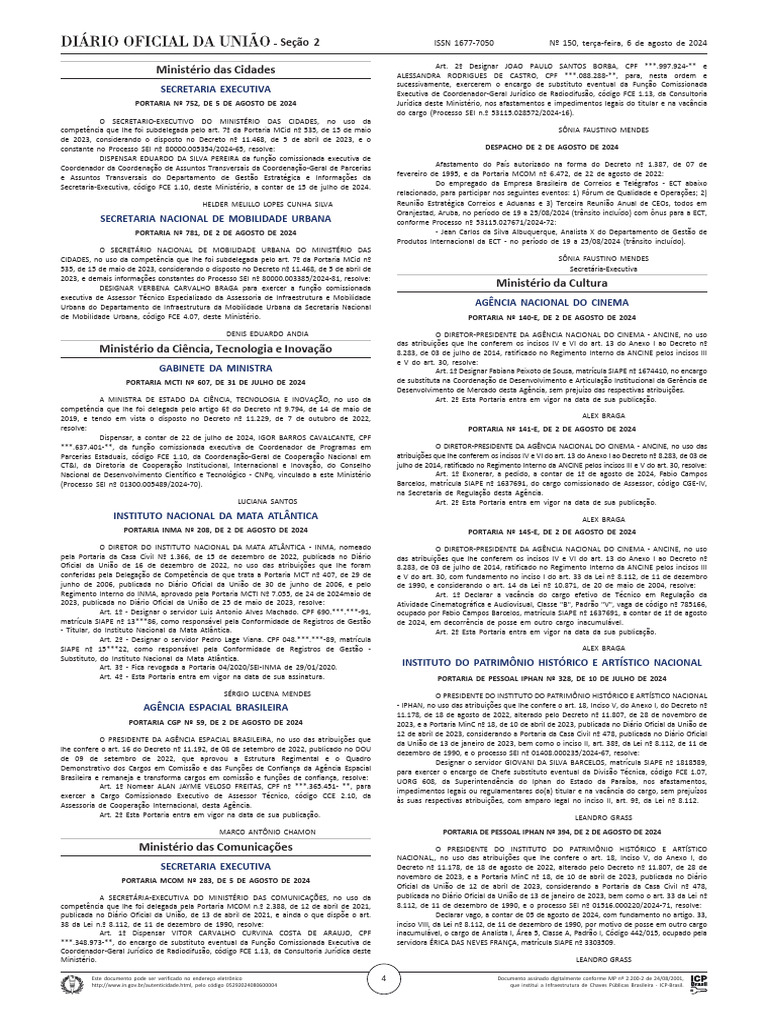Seção 2 ISSN 1677-7050 Nº 150, terça-feira, 6 de agosto de 2024