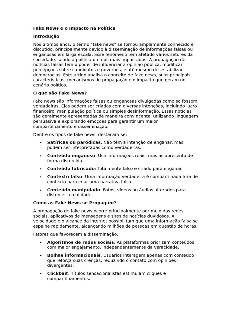 financeiro, manipulação política ou simples desinformação. Essas notícias