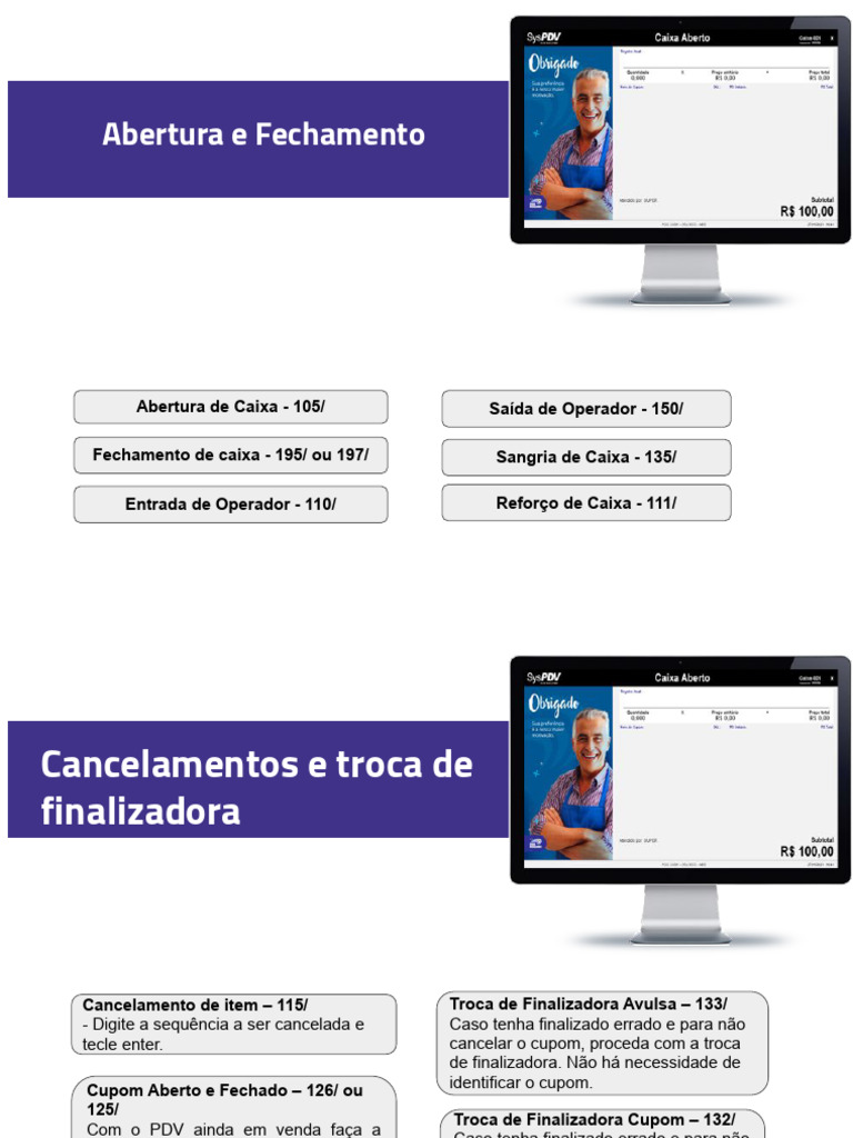 Fechamento de caixa - 195/ ou 197/ Sangria de Caixa - 135/