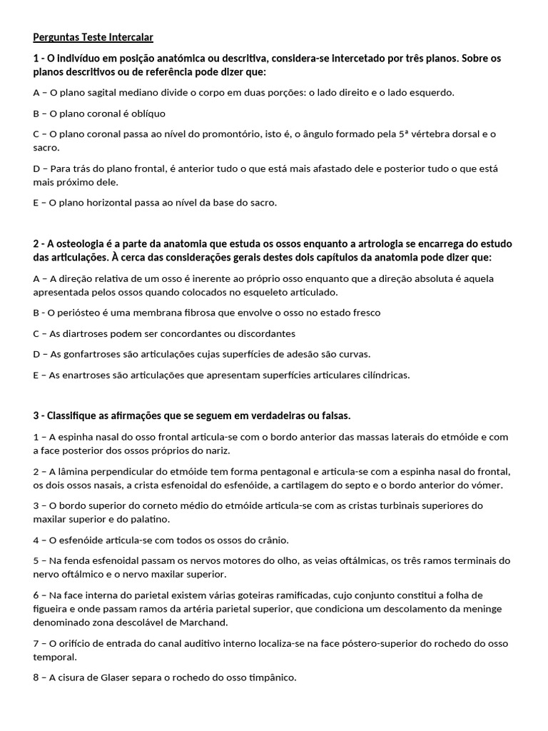 2 - A osteologia é a parte da anatomia que estuda os ossos enquanto a artrologia se encarrega do estudo