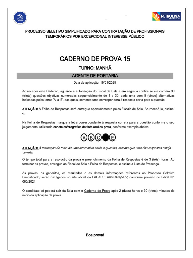 (trinta) questões objetivas numeradas sequencialmente de 1 a 30, cada uma com 5 (cinco) alternativas