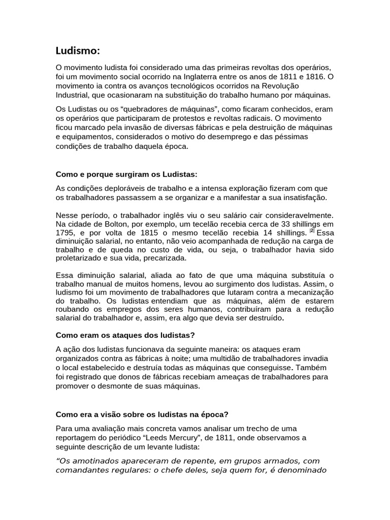- Outro ponto citado no texto era que os ludistas seguiam ordens muito
