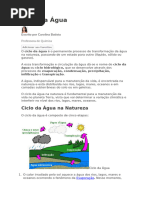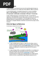 A água desenvolve um ciclo. O chamado ciclo da água é o caminho que ela percorre. A