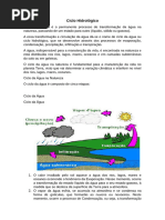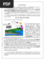 Descreve o Ciclo da Água representado fazendo corresponder o número à afirmação