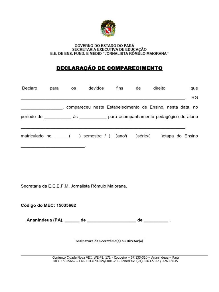 DECLARAÇÃO DE COMPARECIMENTO