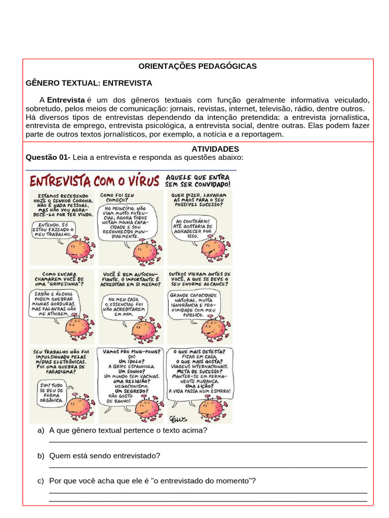 Questão 01- Leia a entrevista e responda as questões abaixo: