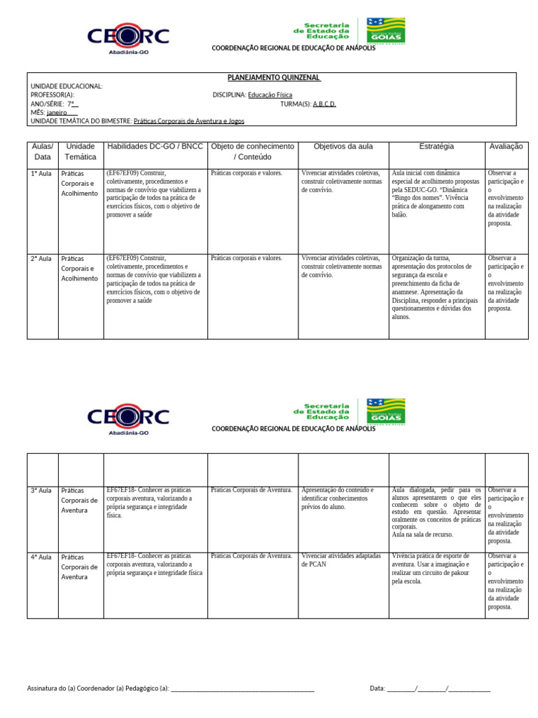 Assinatura do (a) Coordenador (a) Pedagógico (a): _________________________________________ Data: ________/________/____________