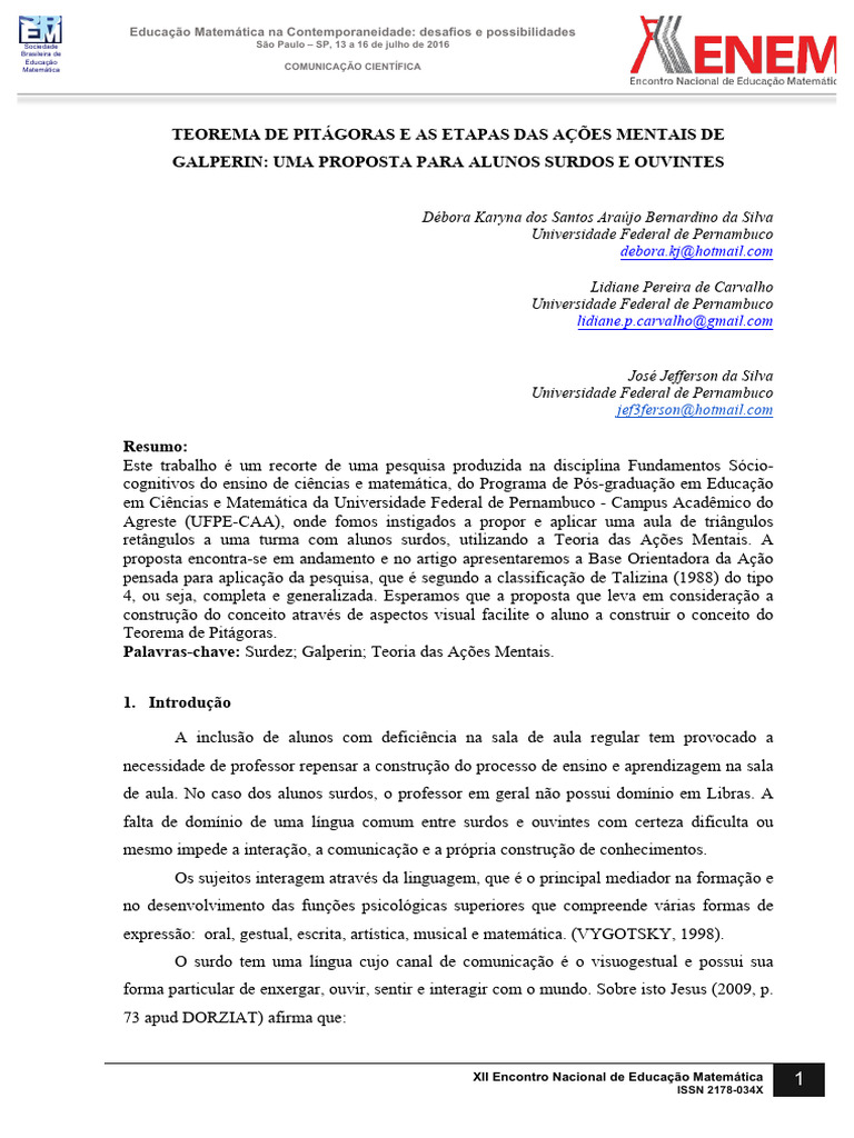 Palavras-chave: Surdez; Galperin; Teoria das Ações Mentais.
