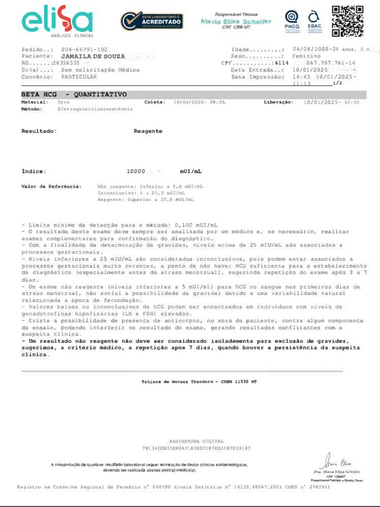 Paciente: JAMAILA DE SOUZA Sexo..........: Feminino