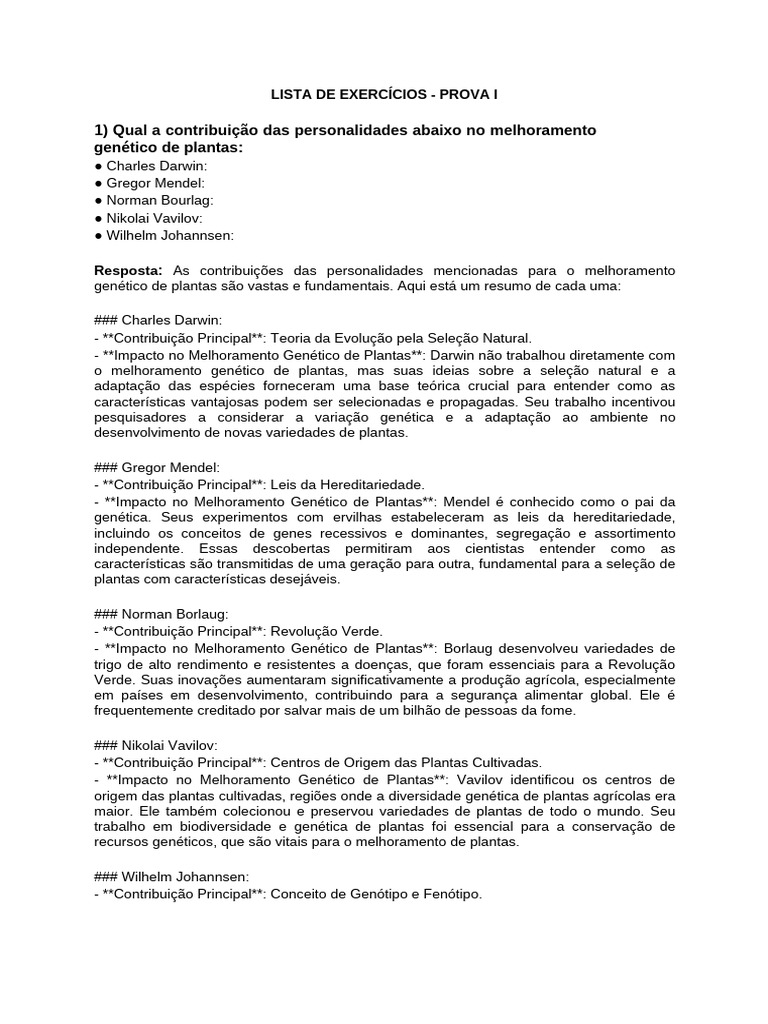 1) Qual a contribuição das personalidades abaixo no melhoramento